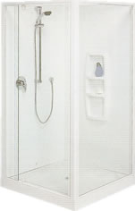 Many of our shower modules are available as multi-piece units, making them ideal for remodeling. They're easy to maneuver through doorways and up staircases, and the streamlined module pieces fit together securely for a watertight seal.